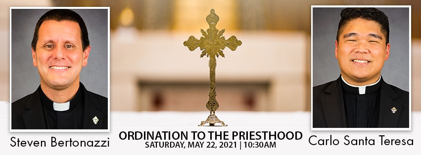 On Saturday, May, 22 at 10:30 a.m., Bishop Sullivan will ordain Mr. Steven Bertonazzi and Mr. Carlo Santa