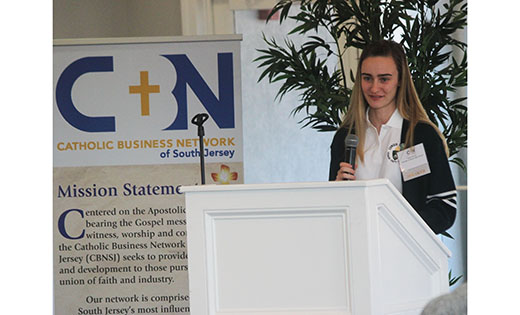 Business professionals hear from a high school student